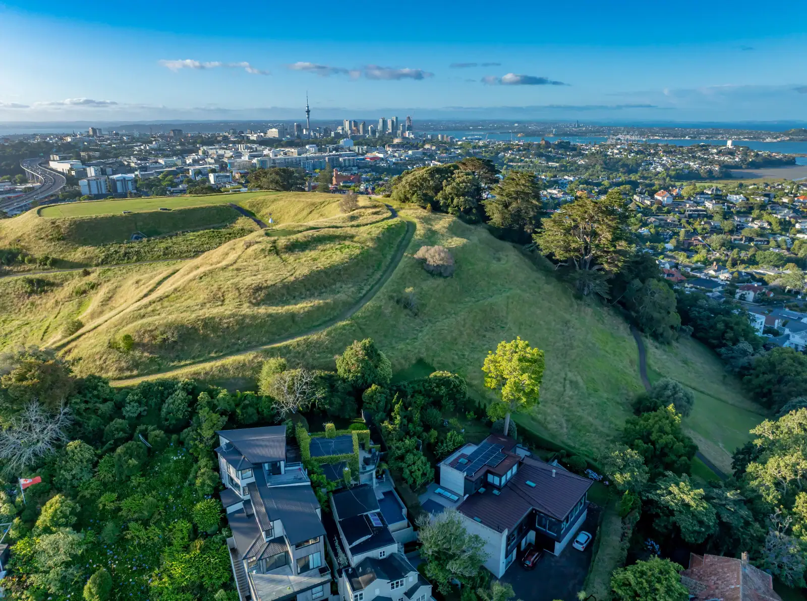 The suburb developed rapidly after 1873 when Alfred Cucksey established the first store. Electric trams arrived in 1902, running along both Mt Eden Road and Dominion Road, which accelerated suburban growth through the 1920s. Today the area contains a mix of properties from 19th-century homes through to modern apartments, with the volcanic domain remaining the defining feature.